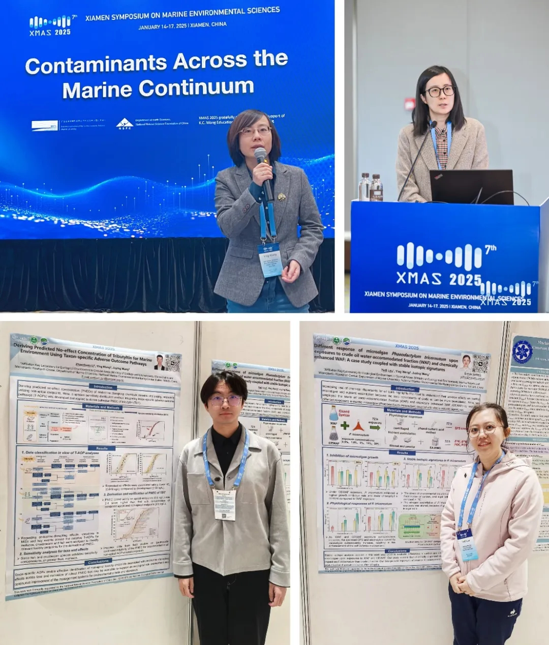 我中心王莹研究员与中国科学院南海海洋研究所和厦门大学专家共同召集“海洋连续体中的污染物:行为、归趋及生态风险评估”分会场?;嵘?,丛艺副研究员以《海水中内分泌干扰物(EDCs)预测无效应浓度推导的SSD新方法》为题进行汇报,系统梳理了EDCs水质基准推导所面临的挑战以及以物种敏感度分布(SSD)模型为基础理论的方法学发展趋势。李昭川作了题为《基于有害结局路径的我国三丁基锡海洋生物水质基准研究》的墙报展示,将有害结局路径与SSD方法相结合,为新污染物海洋生物水质基准制定提供新思路和新方法。娄亚迪作了题为《三角褐指藻对原油水溶性组分与化学增强水溶性组分胁迫的响应差异:基于稳定同位素组成特征的研究》的墙报展示,阐明了化学分散剂作用下原油胁迫对三角褐指藻生长效应、生理响应及营养物吸收利用的影响,有助于揭示海洋溢油污染的长期不利影响,为溢油灾后处置决策提供科学依据。